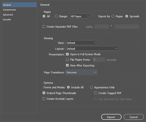 - Adobe enables you to add page transitions to PDF files that can be viewed in Acrobat or similar PDF readers. You can add some page turn animations by exporting from Adobe InDesign as an interactive PDF and selecting one of the page transitions. This will play when a user views a PDF fullscreen. The wipe and uncover effects are very close to a page-turn animation.