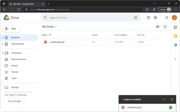 - Drag and drop your document to Google Drive to upload it.