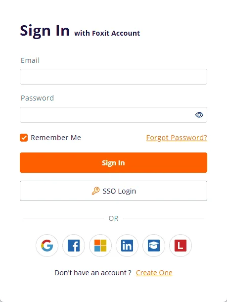 - Sign in to Foxit with the account you just created.
