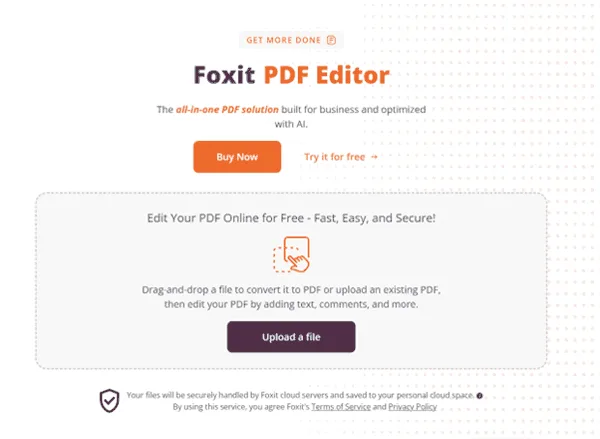 - Go to the Foxit website and press “Free trial”. Sign up for an account and install the PDF editor.