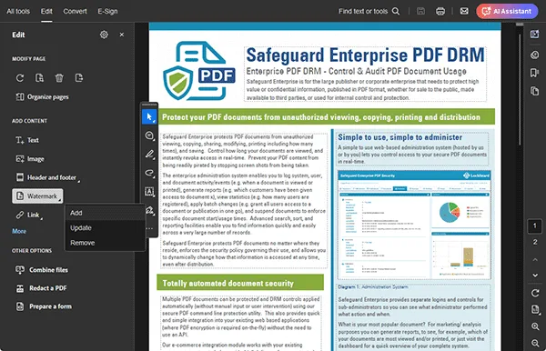 Watermarks are simple to place with tools like Adobe Acrobat, but as we’ve demonstrated, they’re just as simple to remove. For your confidential watermarks to remain a worthwhile security measure, you need a solution that’s able to stop them being easily removed. This means watermarking software that effectively prevents PDF editing and stops screenshots while retaining important customization options.