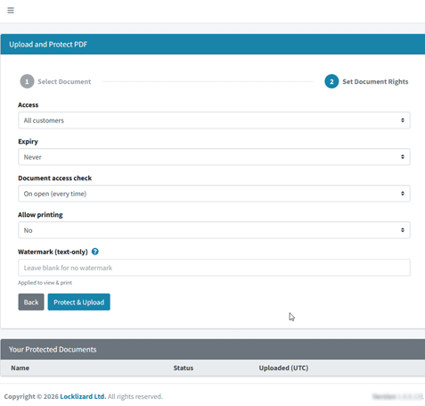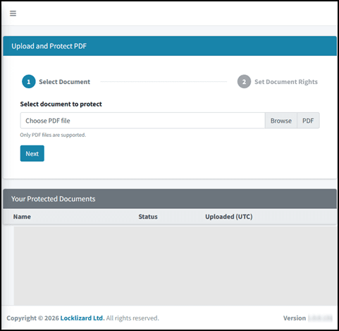 Safeguard Lite uses a web-based writer rather than a desktop application to apply Locklizard DRM to PDF documents. The full process to protect a document with Safeguard Lite looks like this: