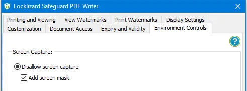 It is really simple to stop users sharing screens or block recording of your sensitive info or valuable IP using Locklizard. In Safeguard Writer just select ‘Disallow screen capture’.