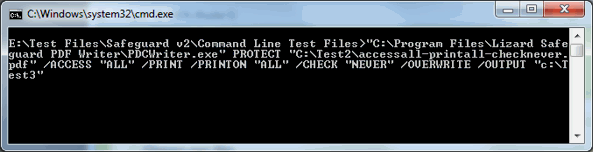 Safeguard’s PDF protection Command Line Utility allows the automation of actions that would otherwise have had to be carried out manually whilst protecting PDF documents through the Writer GUI. Commands can be run from the DOS prompt or a batch file without the need for manual input or user intervention. All the PDF protection options available through the Safeguard Writer GUI can be accessed through the command line utility.