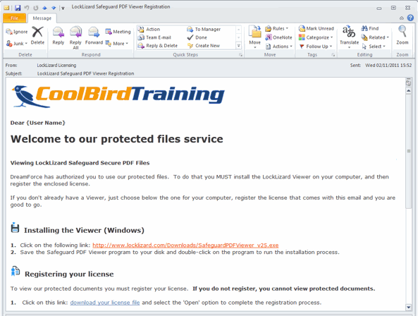 - The Admin system automatically sends users a welcome email with their registration file and download links to the Secure PDF Viewer software. If you are using Web Publisher then users will be sent an email with their login details to the Web Viewer protected document portal.