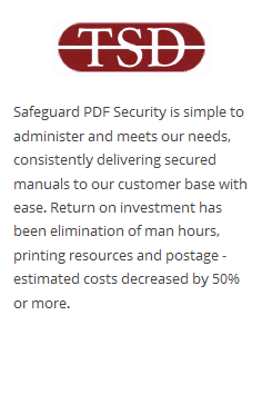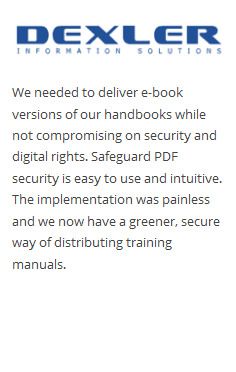 For more information see Safeguard PDF DRM for small publishers and Safeguard PDF DRM for large publishers.