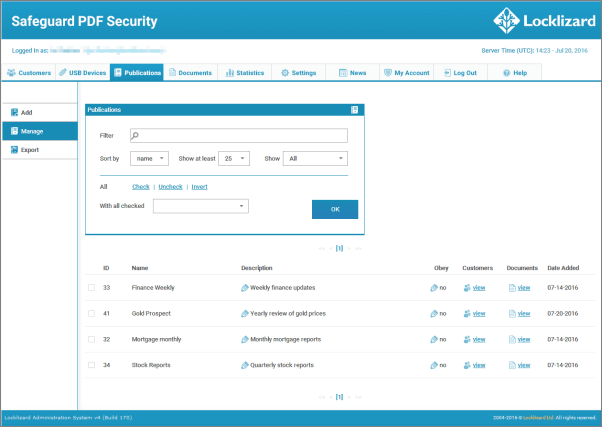 Safeguard’s PDF protection enables you to control expiry to your publications on an individual user and publication basis. Users, for example, may have subscribed to one of your publications for a year, and all documents in that publication are accessible to them for a year. After a year, they will still be able to view their existing documents, but not any new ones that are published after their subscription period has ended, unless of course they subscribe for an additional period. Users can be given access to multiple publications, each with their own expiry period.