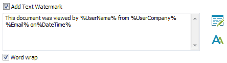 For additional PDF protection against photos or photocopies being taken, you can add custom text, system data, and image watermarking to a document. This is displayed when a protected PDF document is printed and/or viewed in the Secure PDF Viewer software. The following items can be displayed – images, custom text, system data (date/time, user name, company name, email address).
