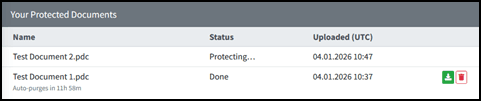 Make sure you download your protected file before purging, as there is no way to recover it afterwards.